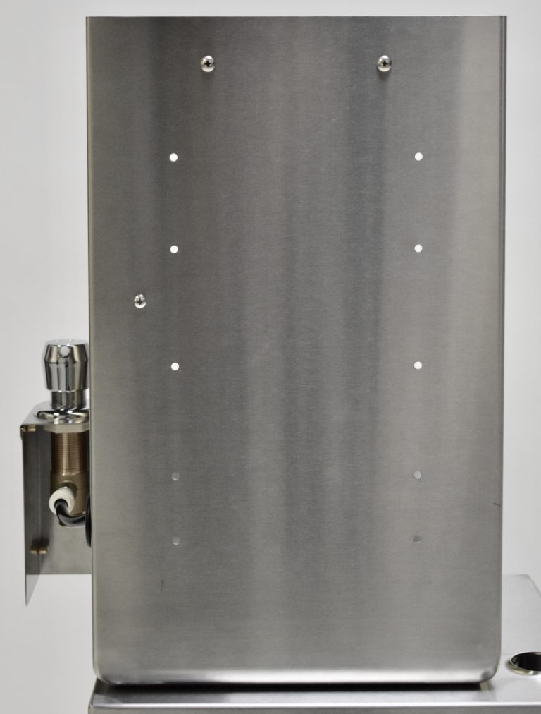 ...in tight spaces. Auto-Rinse™ becomes part of your bar simply by mounting it to a wall with standard fasteners. We provide the mounting holes on the rear of the unit (as seen here), you provide 6 stainless steel fasteners. Just make sure you choose the right ones for the type of wall you're dealing with.