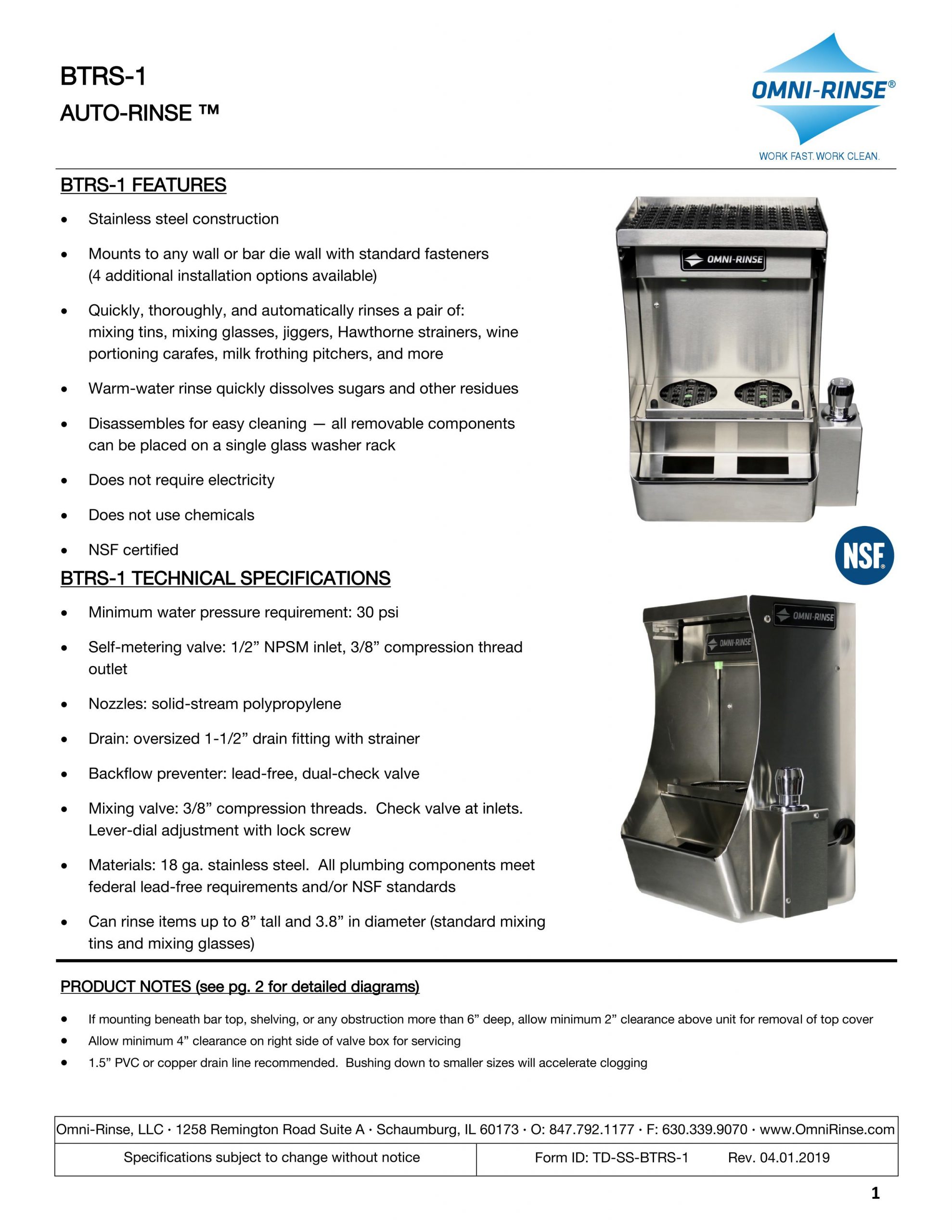 ...with very little fuss. Auto-Rinse™ increases efficiency and sanitation without remodeling or renovating. Simply rearrange some equipment to make just 16" of lateral space, and suddenly your bar stations are much more user-friendly. Increase bar output, face-time with customers, and profit potential. Auto-Rinse™ makes the entire FOH more efficient.